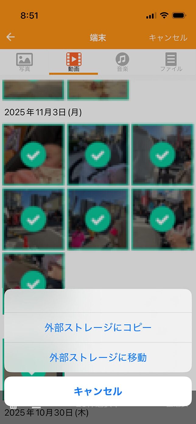 考えた結果、USBメモリへ動画を移動させることにしました。