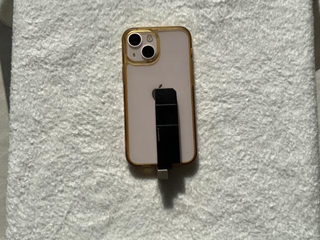 画面側にUSBメモリの本体が被さるように差し込むことも可能ですが、データの移動中はiPhoneがヒートアップするため、その状態で充電するのは良くないですし、画面も操作しづらくなるのでお勧めしません。